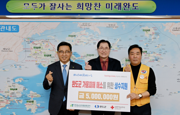 김춘진 한국농수산식품유통공사 사장은 “가뭄으로 고통받는 완도군민의 식수난 해결에 작은 도움이 되길 바란다”라며, “앞으로도 도서 지역문제 해결과 농어촌 상생을 위해 다양한 사회적 책임 활동을 이어 가겠다”라고 말했다.