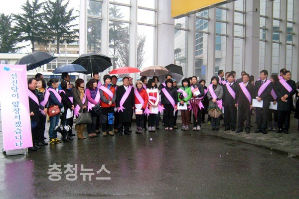 이날 캠페인에는 권선택 시당위원장과 염홍철 대전시장, 이재선 국회의원, 한현택 동구청장 및 선진당 대전지역 시·구의원과 당원등 100여명이 참석했다.