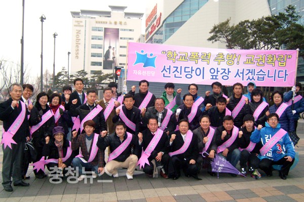 선진당 여성위원회는 대전역광장, 청년위원회는 복합고속터미널 등 두 곳에서 각각 진행됐으며 당원들은 홍보를 위한 어깨띠를 하고, 홍보물을 나눠주면서 고향을 찾는 귀성객들에게 학교폭력 추방을 호소했다.