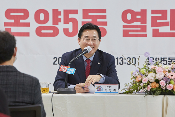 박경귀 시장은 지난 24일 온양5동 행정복지센터에서 열린 주민들과의 열린 간담회에서 이같이 밝히며 “온양5동은 국립경찰병원 아산 분원, 충남권역 재활병원, 용화체육공원 등 주거단지에 필요한 명품 인프라가 조성될 예정인 복된 지역”이라고 말했다.