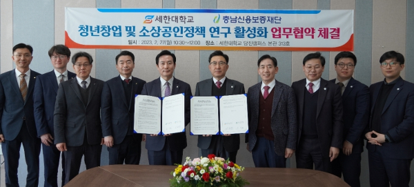 1일 충남신보에 따르면 지난달 27일 세한대에서 ‘충청남도 청년창업 및 중소기업·소상공인 정책 연구 활성화를 위한 업무협약’을 체결했다.