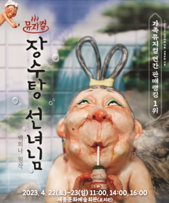 [충청뉴스 최형순 기자] 세종시문화재단(대표이사 김종률)은 다가오는 봄을 맞아, 온 가족 따뜻한 추억을 쌓을 수 있는 가족 뮤지컬 ‘장수탕 선녀님’을 선보인다.