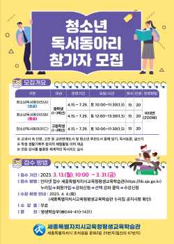 세종평생교육학습관, 청소년 독서동아리 모집