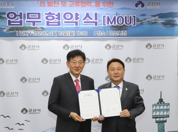 한국섬진흥원(KIDI, 원장 오동호)은 13일 오전 군산시청에서 군산시(시장 강임준)와 섬 발전을 위한 업무협약(MOU)을 체결했다.