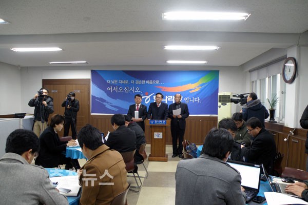 ▲ 송병대 새누리당 예비후보의 기자회견에 많은 취재진이 참석했다.