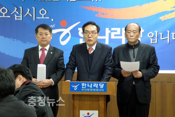 ▲ 송병대 새누리당 예비후보가 대전시당에서 출연연 개편과 관련한 기자회견을 가졌다.
