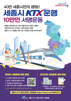 [충청뉴스 최형순 기자] 세종시는 ‘케이티엑스(KTX) 운행’을 촉구하는 온·오프라인 서명운동을 추진하고 있다고 22일 밝혔다.
