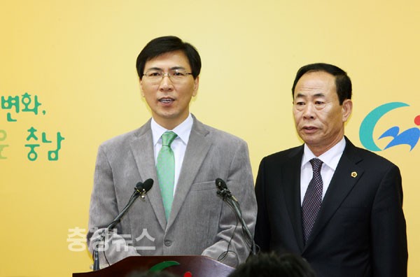 ▲ 안희정 충남도지사와 유병기 충남도의회 의장이 공동기자회견을 열고