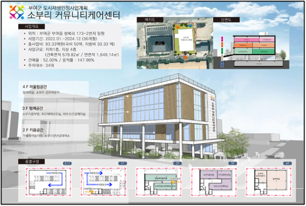 [충청뉴스 부여 = 조홍기 기자] 부여군(군수 박정현)이 ‘소부리 커뮤니티케어센터(이하 센터)’ 조성으로 지역공동체 활성화 의지 구현에 나선다.