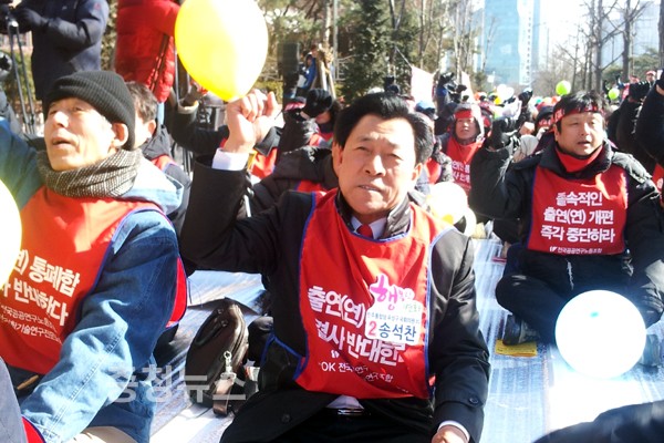 송석찬 민주통합당 유성구 예비후보가 8일 서울에서 열린 출연연 통폐합 저지 결의대회를 찾아 지지의사를 밝히는 한편 보도자료를 통해 대덕특구 및 과학기술 관련 공약을 발표했다.