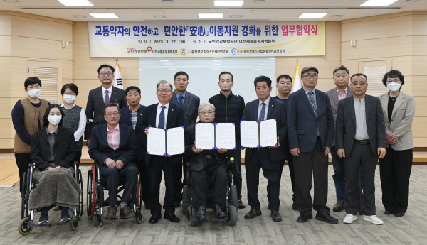 [충청뉴스 최형순 기자] 국민건강보험공단 대전세종충청지역본부(본부장 정일만)와 충북장애인단체연합회(연합회장 변창수)‧(사)충북장애인자립생활센터총연합회(연합회장 최현기)는 27일 국민건강보험공단 대전세종충청지역본부에서 사회적 가치 실현을 위한 교통약자 이동지원 업무협약(MOU)을 체결하였다.