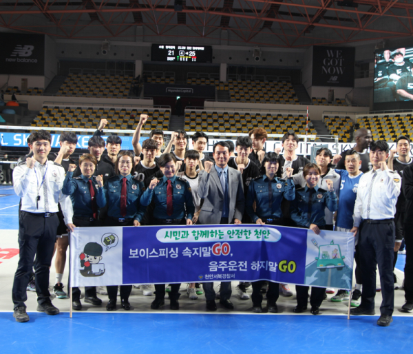 특히 지난 28일 플레이오프 3차전 현대캐피탈 대 한국전력 팀의 경기가 진행된 천안유관순체육관을 찾아 5,000여 명의 시민을 상대로 보이스피싱 예방 홍보활동을 펼쳤다.