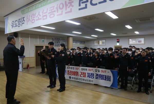 [충청뉴스 박동혁 기자] 천안동남소방서는 대회의실에서 전 직원의 신뢰받는 공직문화 조성을 위한 '중점비위 근절 자정 결의대회'를 실시했다고 29일 밝혔다.