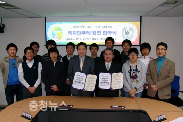 대전복지재단과 남대전고등학교는 15일 대전복지재단 소회의실에서 복지사각지대 해소와 효율적인 복지공급체계 개선을 목적으로 추진 중인 ‘복지만두레’ 학생 참여 협약식을 체결했다.