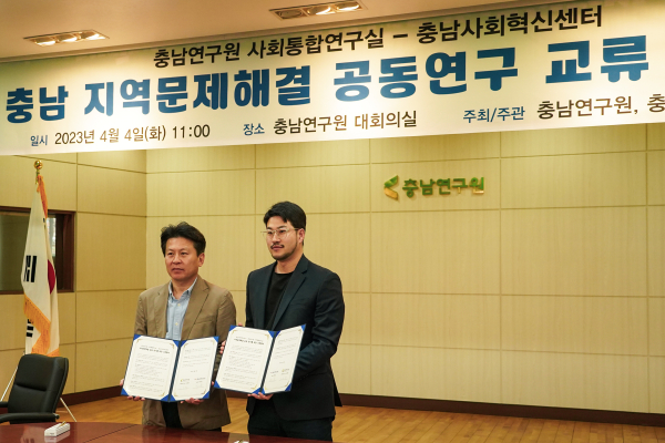 [충청뉴스 박동혁 기자] 충남사회혁신센터는 충남지역이 직면한 사회문제 해결을 위해 충남연구원과 업무협약을 체결했다고 5일 밝혔다.