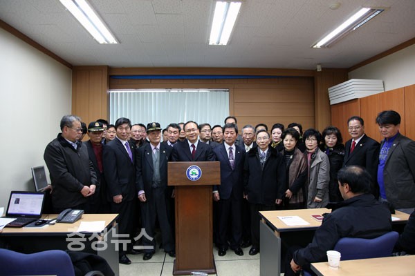 ▲ 성완종 예비후보가 출마 기자회견에 많은 지지자들이 참석했다.