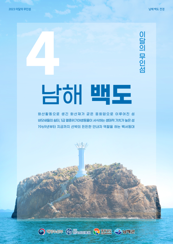 [충청뉴스 최형순 기자] ‘바닷새들의 쉼터’ 남해 백도가 ‘이달의 무인섬’으로 선정됐다.