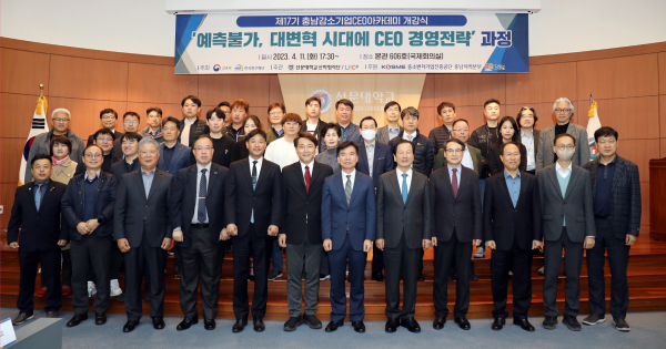 [충청뉴스 박동혁 기자] 선문대학교는 지난 11일 아산캠퍼스 국제회의실에서 제17기 충남강소기업CEO아카데미 개강식을 개최했다고 밝혔다.