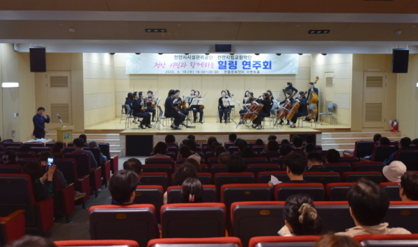 [충청뉴스 박동혁 기자] 천안시시설관리공단은 천안시립교향악단을 초청해 한들문화센터 이벤트홀에서 ‘천안 시민과 함께하는 힐링음악회’를 개최했다고 21일 밝혔다.
