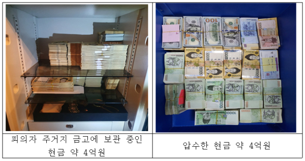 또한 피해자들에 대한 금전적 회복을 위해 A씨의 주거지에서 현금 약 4억 원 가량이 보관돼 있던 금고를 발견하여 압수했다.
