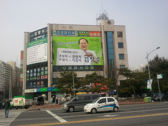 무소속 김창수 후보 '애정남' 패러디 현수막 눈길