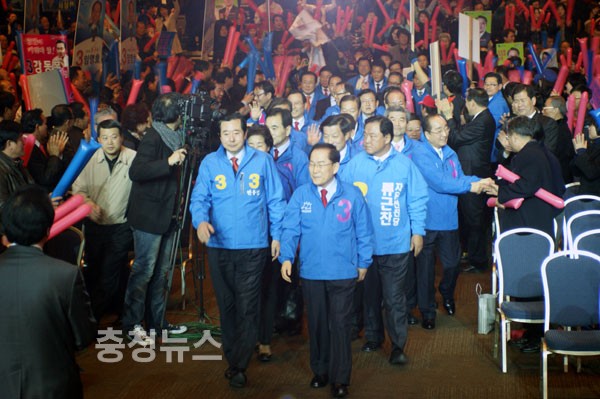 ▲ 자유선진당 총선 후보들과 주요인사들이 입장하고 있다.