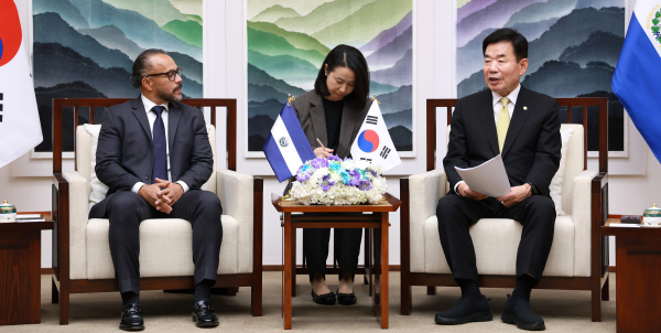 김 의장은 경제 및 개발협력과 관련, "2021년 한-중미 FTA 발효 이후 양국 교역이 확대되고 우리 기업들의 현지 섬유·의류 사업 투자도 늘어나고 있다"며 "우리 기업과 동포들의 원활한 활동을 위해 엘살바도르 의회가 관심을 갖고 지원해주길 바란다"고 당부했다.