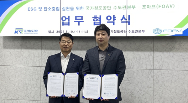 국가철도공단 수도권본부장(이계승)은 “이번 탄소중립 파트너 포아브(FOAV)와 협약 체결로 다양한 탄소저감과 사회공헌활동을 지속적으로 실천해 나가겠다”고 말했다.