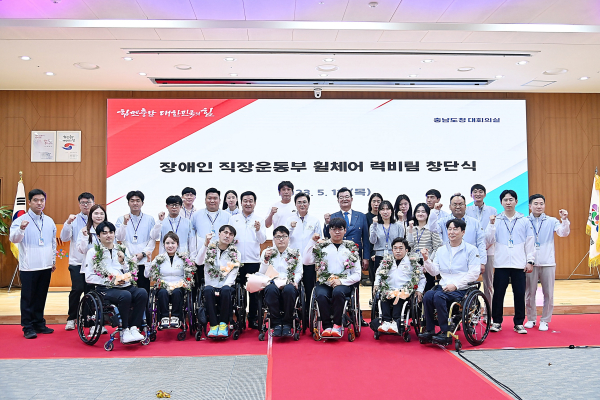 도는 11일 도청 대회의실에서 김태흠(도 장애인체육회장) 지사와 정진완 대한장애인체육회장, 김종배 대한장애인럭비협회장 등 100여명이 참석한 가운데 ‘휠체어럭비팀 창단식’을 개최했다.