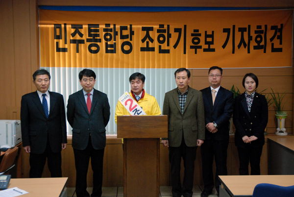 민주통합당 조한기(서산·태안)후보는 22일 성명서를 통해 새누리당 유상곤 후보와 자유선진당 변웅전 후보, 무소속 성완종 후보를 비판하고 나섰다.