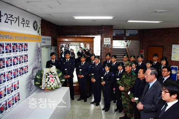 한남대학교와 총학생회는 천안함 2주기인 오는 26일을 앞두고 22일 오전 9시부터 교내 법과대 1층 로비에서 천안함 희생 장병 2주기 추모행사를 가졌다.