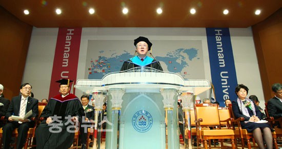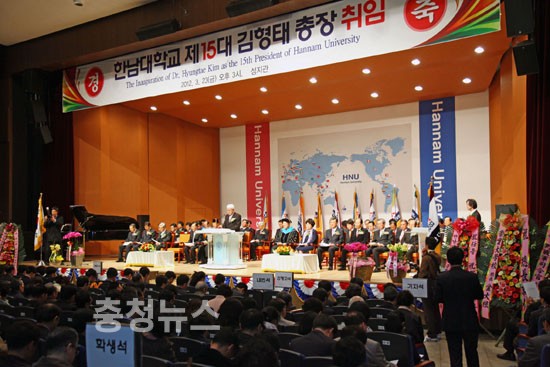 한남대가 23일(금) 오후 3시 교내 성지관에서 제15대 김형태 총장 취임식을 가졌다. 김형태 총장은 2008년 한남대 개교 이후 첫 동문 총장으로 선임된데 이어 2012년 연임에 성공하였다.