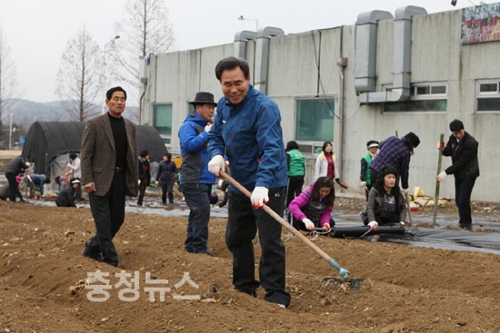 이날 이기원 계룡시장도 바쁜일정 속에서도 감자 심을 밭이랑을 회원들과 함께 작업 하는 등 「사랑의 감자심기 행사」에 동참해 화기애애한 분위기속에서 수고하는 새마을 가족들을 격려했다.