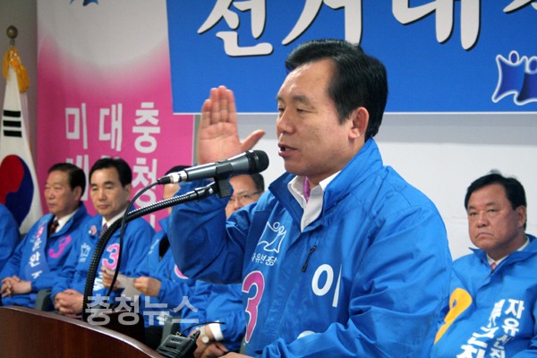이번 선거에 반드시 우리나라의 심장부인 우리 충남부터 선진당 바람을 일으켜 반드시 교섭단체 아니 모든 후보들을 압도적으로 100% 당선 시켜주시기 당부했다.