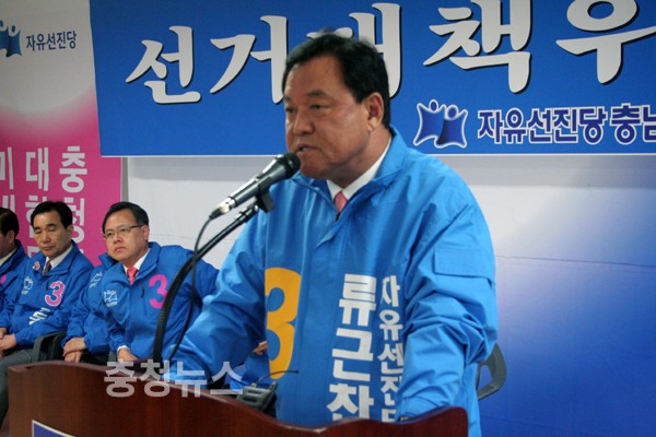 류근찬 충남공동선대위원장은 저는 요즘 지역구를 돌면서 지역주민들로부터 이 말을 듣는다. “자유선진당 나가서 뒈져” 그 때마다 섬뜩섬뜩하다. 그런데 저는 과거에 우리 부모님으로부터 그 소리를 듣고 자랐다. 그 얘기를 지금 듣는다.