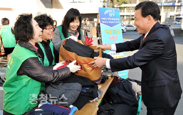 ▲ 박용갑 중구청장이 헌옷을 기증하고 있다.