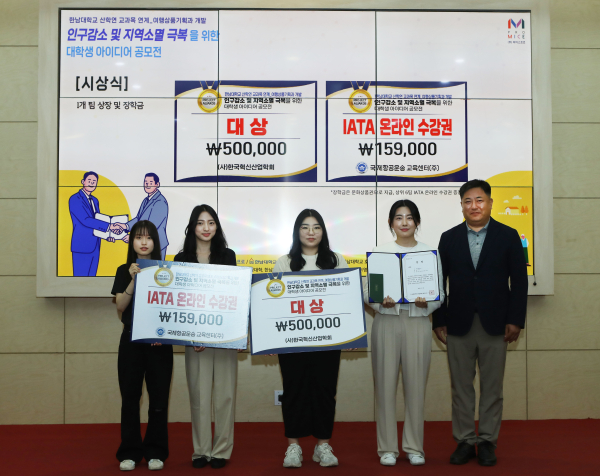 한남대는 교원창업 회사인 ㈜마이스프로(공동대표 한학진, 김형석)가 주최하고 한남대 LINC3.0사업단, (사)한국혁신산업학회, 한남대 호텔항공경영학과 학회 ‘가온’이 공동 주관한 대학생 아이디어 공모전을 개최했다고 밝혔다.