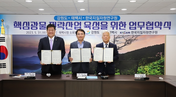 지질연은 31일 강원도, 태백시와 핵심광물 전략산업 육성을 위한 업무협약을 체결했다.