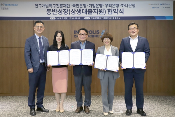 특구재단은 특구내 기업의 자금력 확보를 통한 기업성장 지원을 위해 4개 금융기관(국민은행, 하나은행, 우리은행, 기업은행)과 ‘특구기업 상생대출’ 협약을 체결했다고 1일 밝혔다.