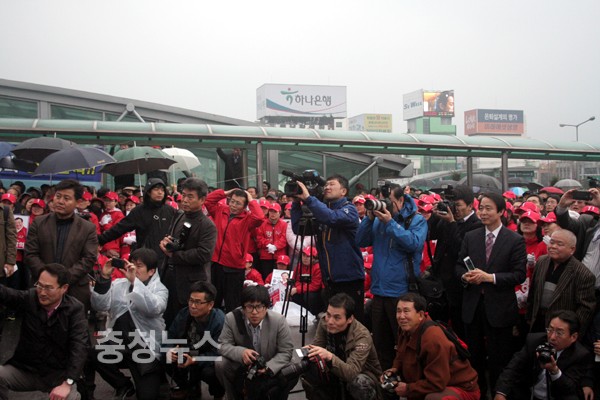 ▲ 2천여명의 지지자들이 대전역 광장에 모여 장사진을 이뤘다.