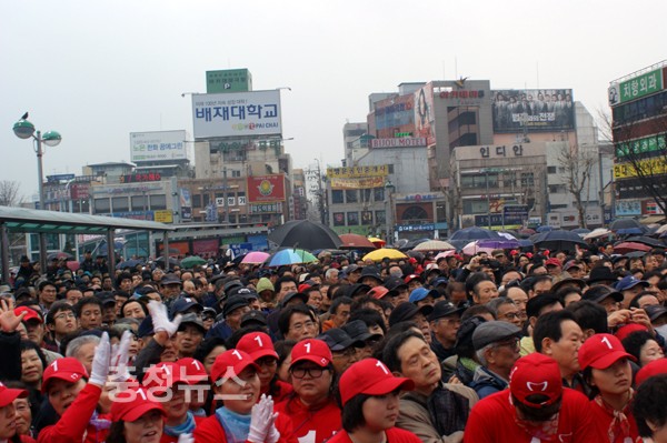 대전은 대한민국의 중심이고 지역균형발전의 미래가 걸린 곳이다. 정말 저에게는 남다른 곳이다. 10년동안 새누리당 의원이 없었다. 일하고 싶어도 일을 할 수 없었다다며 중구 강창희 후보는 대전을 대표하는 정치인이다. 또 앞으로 대전과 우리나라를 위해 꼭 필요한 분이라고 지지를 호소했다.