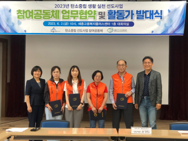 [충청뉴스 최형순 기자] 세종기후·환경네트워크(상임대표 손경희)는 참여공동체와 함께 2일 세종고용복지플러스센터 대회의실에서 ‘23년 탄소중립 생활 실천 선도사업의 효율적 운영과 사업성과 확대를 위한 업무협약을 체결했다.
