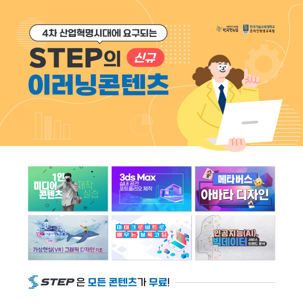 [충청뉴스 박동혁 기자] 한국기술교육대학교 온라인평생교육원은 STEP을 통한 전 국민의 평생직업능력개발의 지원을 강화하기 위해 신규 콘텐츠 서비스를 확대했다고 5일 밝혔다.