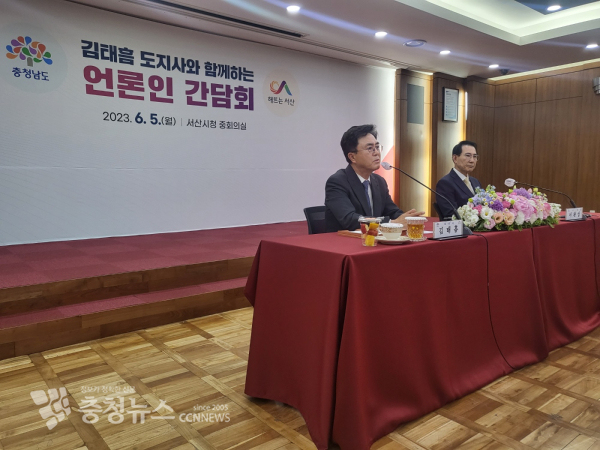 김태흠 충남지사는 5일 민선8기 시·군 방문 일정으로 서산시를 찾아 현안에 대해 설명했다./사진 김정식 기자