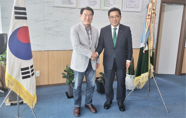 한국농수산식품유통공사 김춘진 사장(우측), 전북대학교 신영철 명예교수(좌측)
