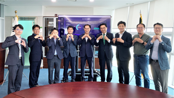 한국농수산식품유통공사 김춘진 사장(우측4번째), 남원시조합공동사업법인 백남정 대표(우측3번째), 춘양골농협 김영규 조합장(우측5번째)