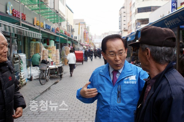 4.11 총선이 8일남은 가운데 자유선진당 이회창 前 대표가 3일 대전 동구에 위치한 중앙시장을 방문해 임영호(동구), 권선택(중구), 이재선(서구을) 후보 지원유세에 나섰다.