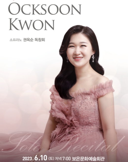 [충청뉴스 최형순 기자] 그라시아스 합창단(단장 박은숙)은 "보은군민을 위한 ‘소프라노 권옥순’ 독창회가 오는 10일(토) 저녁 7시 보은문화예술회관에서 개최한다"고 밝혔다.
