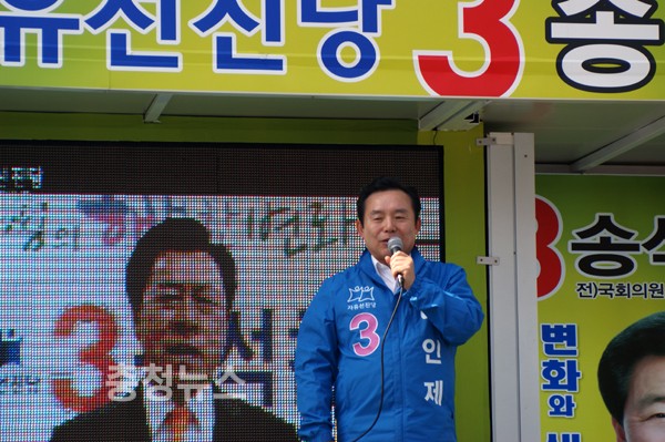 ▲ 이인제 최고위원이 송석찬 후보 지원유세에 나섰다.