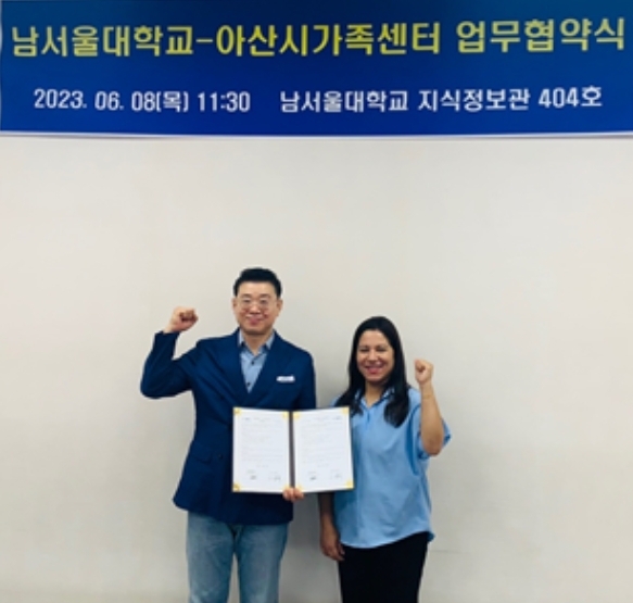 [충청뉴스 박동혁 기자] 아산시가족센터와 남서울대학교 글로벌한국학과는 지난 8일 상호 발전과 전문성 향상을 위해 업무협약을 체결했다.